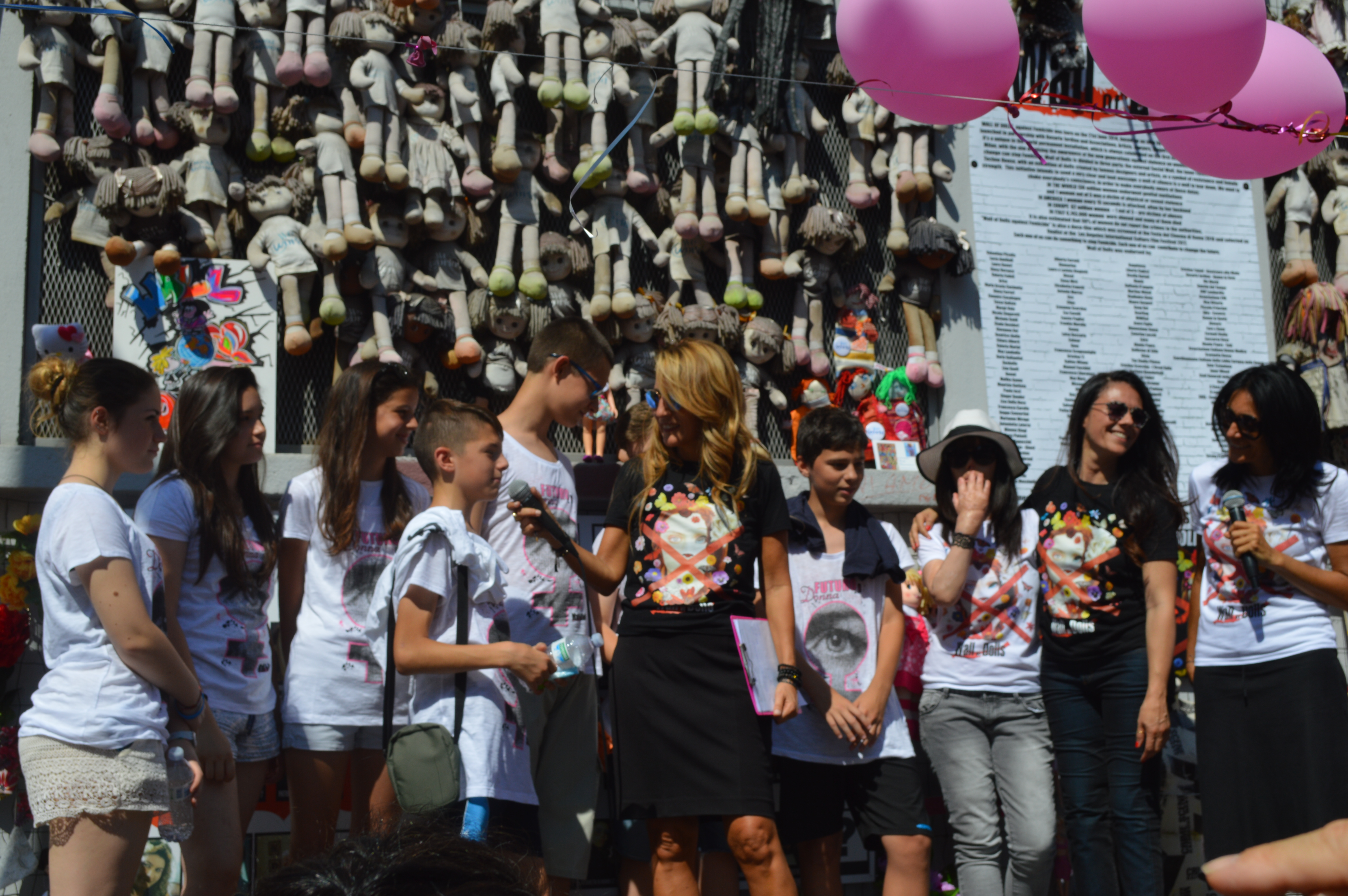Tra coloro che hanno aderito dalla prima ora c’è l’atleta paralimpica Giusy Versace, che ieri ha portato come ogni anno la sua bambolina, fatta a sua immagine e somiglianza: “Hai visto la mia Barbie? L’ho fatta brutalmente amputare perché dovevo portare una bambola che mi rappresentasse. Ne ho fatto realizzare una con le gambine di Swarovski come quelle che ho usato pochi giorni fa per ballare (mercoledì sera al Teatro Manzoni di Milano è andata in scena la prima nazionale dello spettacolo “Con la testa e con il cuore si va ovunque”, ndr)”. Giusy è rimasta colpita soprattutto dalla quantità di persone accorse all’installazione permanente per dire no al femminicidio: “La volontà principale è quella di sensibilizzare gli uomini, ma anche le donne per dire loro di avere coraggio, di parlare, di unirsi. Devono sapere che non sono sole: ci sono tante strutture che le possono tutelare. Ho notato che oggi sono venuti dei ragazzi di 16-17 anni, maschi, a portare la loro bambolina. E questo è bellissimo: significa che qualcosa sta cambiando davvero. Fino a 2/3 anni fa io non vedevo molti ragazzi portare la loro bambola, anzi le strappavano”. Giusy si è congratulata con l’amica Jo Squillo: “Può essere molto contenta di quello che ha messo in piedi, oggi ha bloccato una città. È una donna piena di energia. Io sono solo una piccola parte di questo progetto”. Una piccola grande parte, ci permettiamo di osservare, considerando la generosità e l’entusiasmo coi quali Giusy, modello di vita per tutti noi, promuove questa iniziativa.