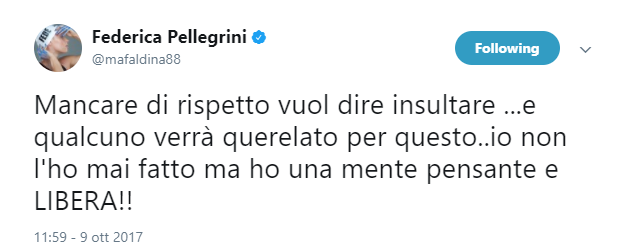 — Federica Pellegrini (@mafaldina88) October 7, 2017